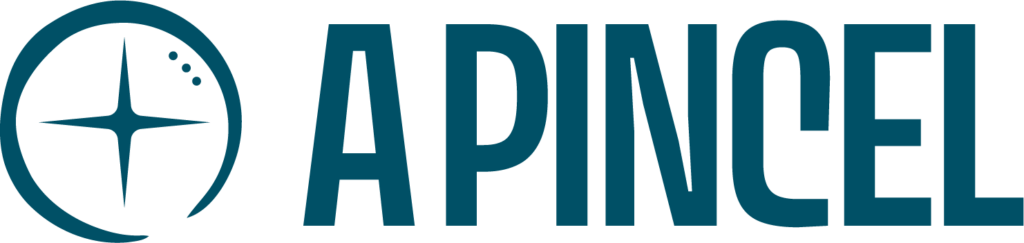 El logo adopta la forma de una moneda, trazada con una pincelada circular que refleja movimiento y continuidad. Dentro aparece una brújula, marcando rumbo y recordando que APINCEL siempre avanza hacia nuevas historias.